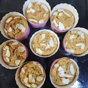These fluffy muffins combine the crunch of almonds with the refreshing flavor of oranges, creating a perfect balance of taste and nutrition. Sweetened with jaggery, they are a wholesome treat free from refined sugar and maida.